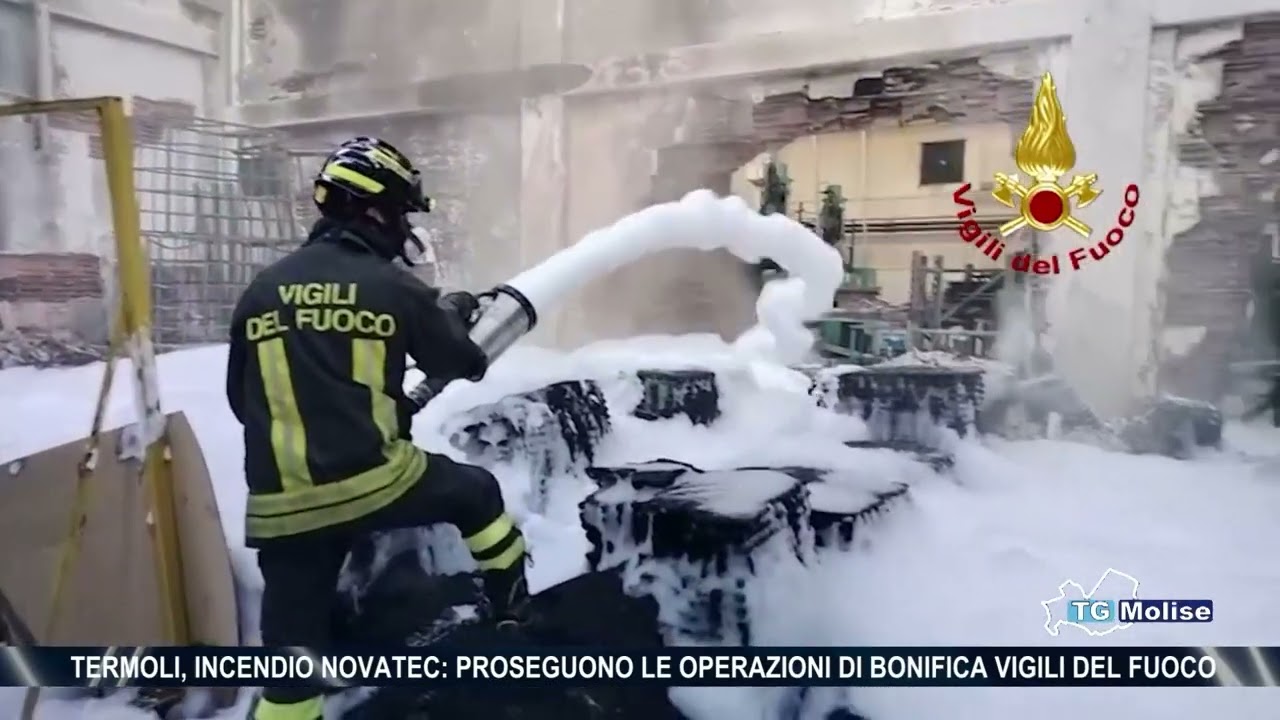 Termoli, incendio Novatec: proseguono le operazioni di bonifica vigili del fuoco