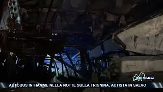 Autobus in fiamme nella notte sulla Trignina, autista in salvo